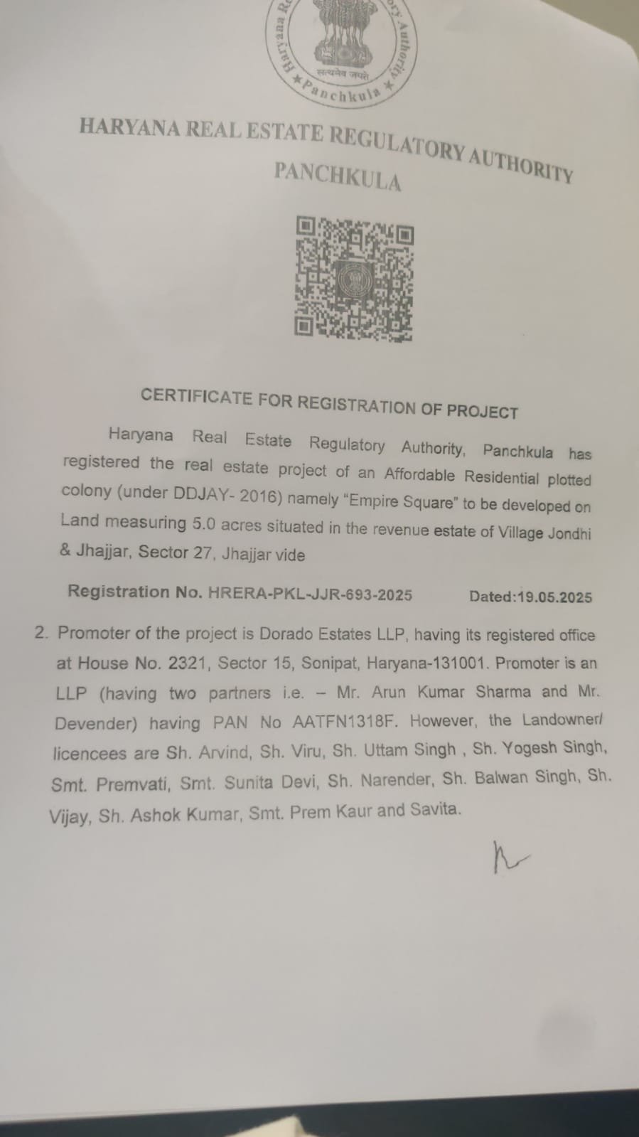 This project is RERA registered. | Authorized Channel Partner | Channel Partner RERA Number : Coming soon | Project RERA Number : HRERA-PKL-JJR-637-2024